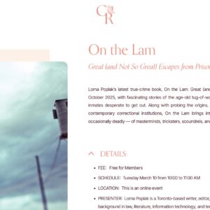 On the Lam Great (and Not So Great) Escapes from Prison Lorna Poplak’s latest true-crime book, On the Lam: Great (and Not So Great) Escapes from Prison, hit the shelves in October 2025, with fascinating stories of the age-old tug-of-war between prisons struggling to keep inmates inside and inmates desperate to get out. Along with […]
