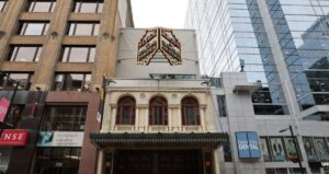 The Elgin and Winter Garden Theatres are seen amid the high-rises of Yonge Street, in downtown Toronto, on August 19, 2025.